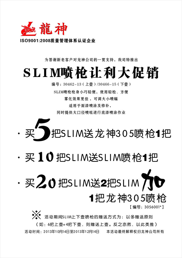 1)買(mǎi)5把SLIM送 龍神305噴槍[編號(hào)3056001*]一把